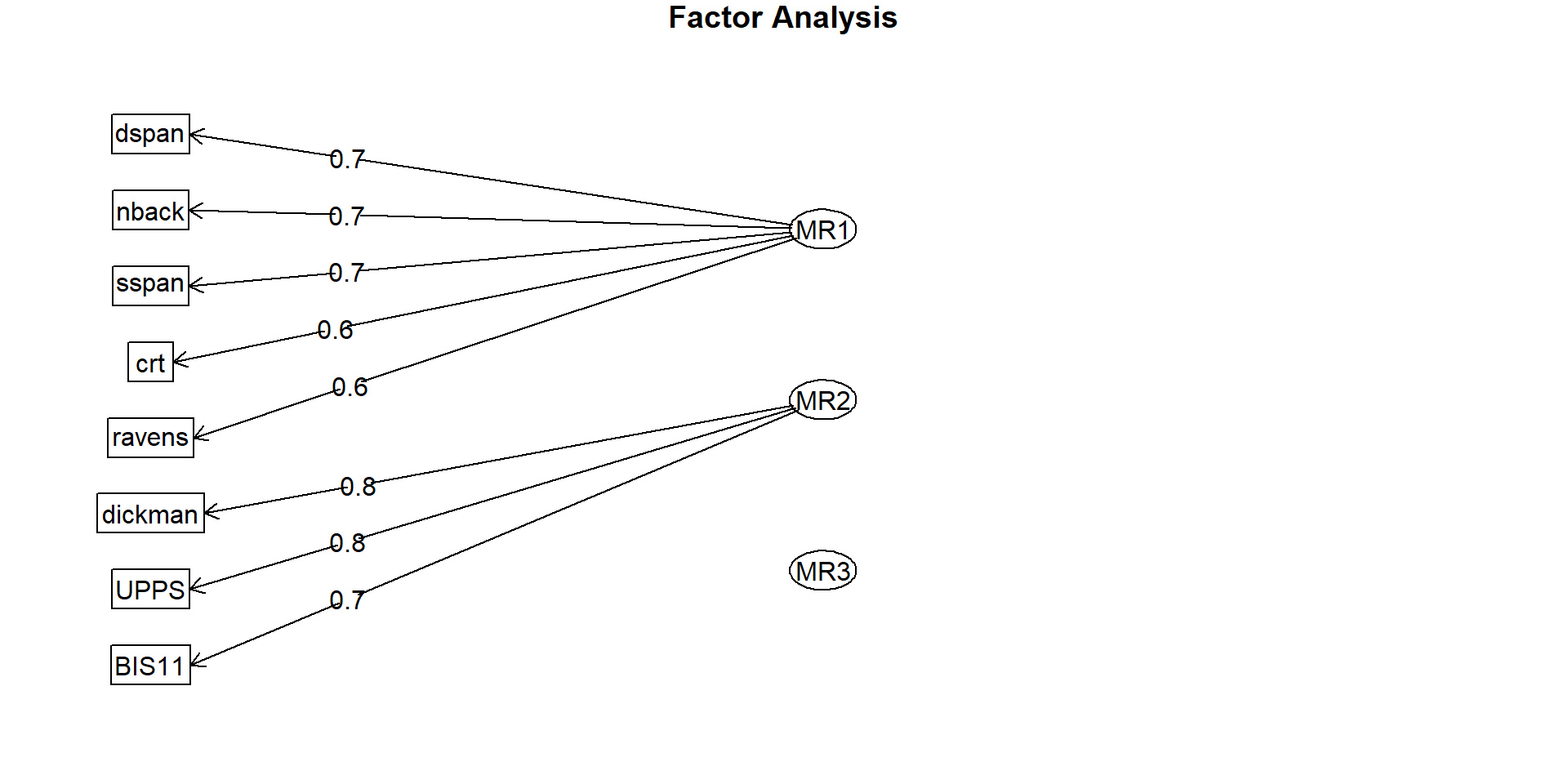 We can see clear clusters: SSRT and UPPS have greater intercorrelations than correlations with the other measure.