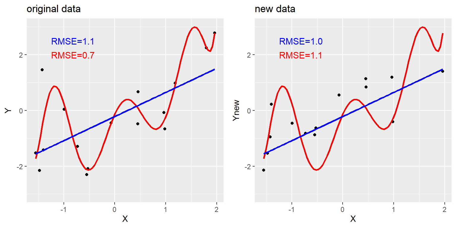 If we fit a line too closely to the data (e.g., with an 8th degree polynomial), the model might not be able to generalize to other data well.