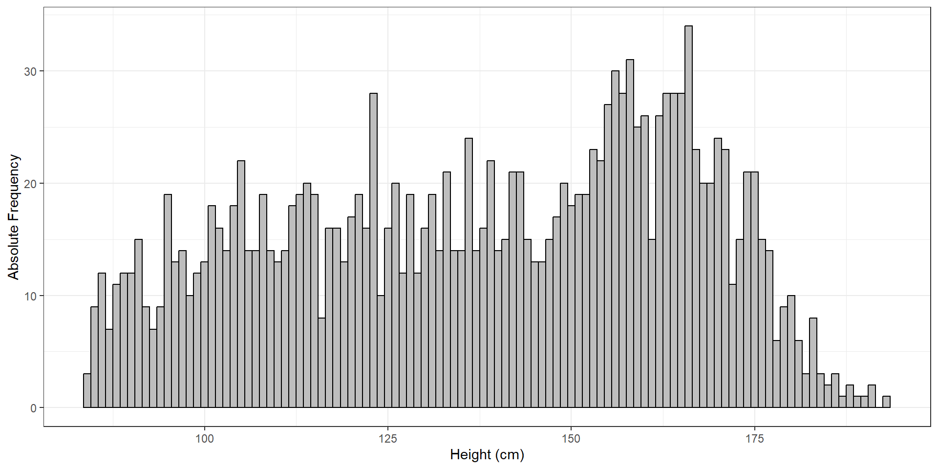 Let’s say we want to have a model of height of students in this Biostatistics class (or height of children based on the NHANES dataset, as used in ST21, see below).