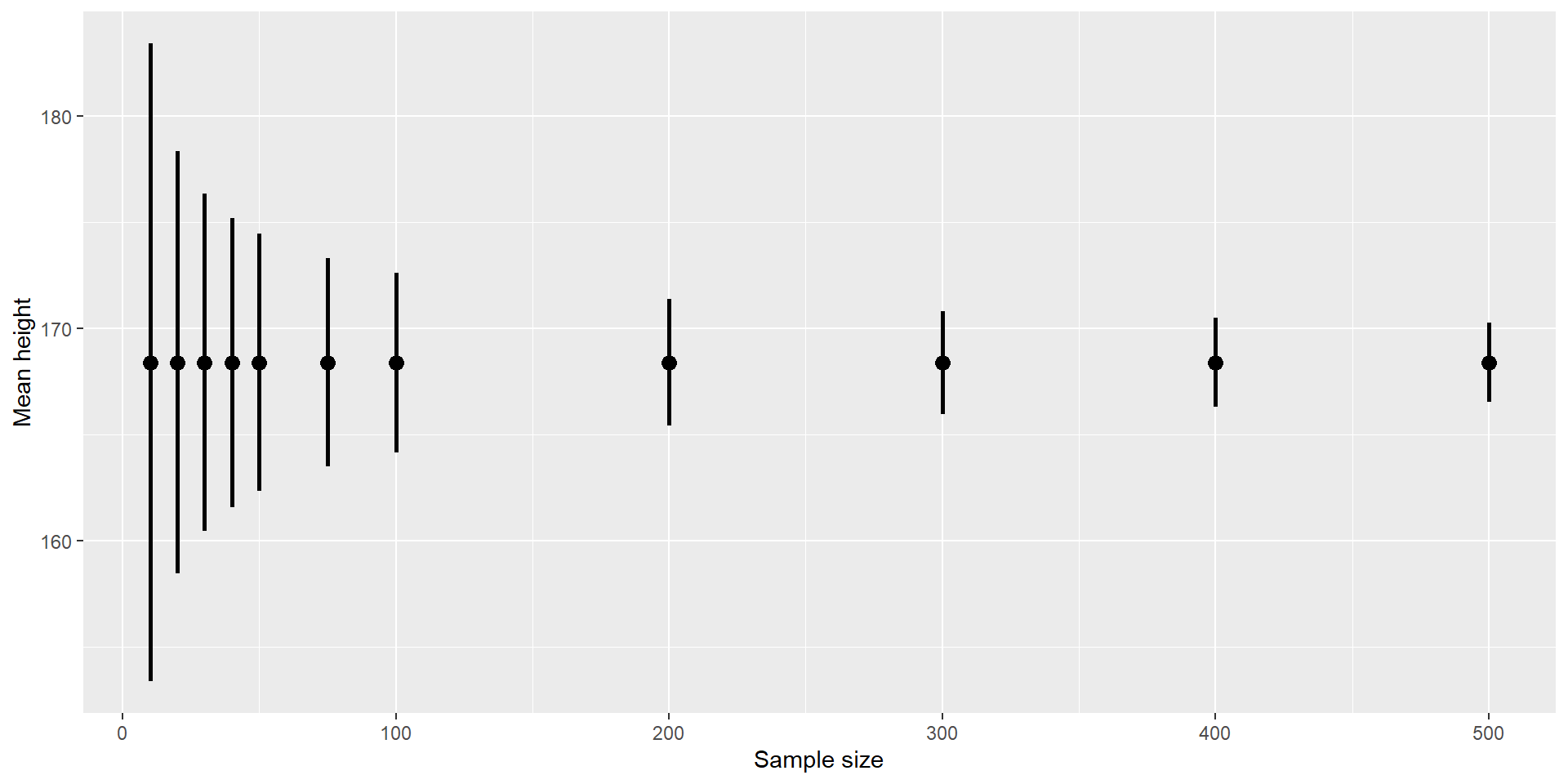 Remember, the SEM (standard error of the mean) was calculated with the sample standard deviation \(\hat{\sigma}\) and the square root of the sample size \(n\):