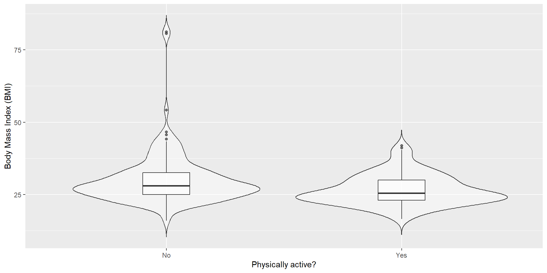 BMI ~ PhysActive,