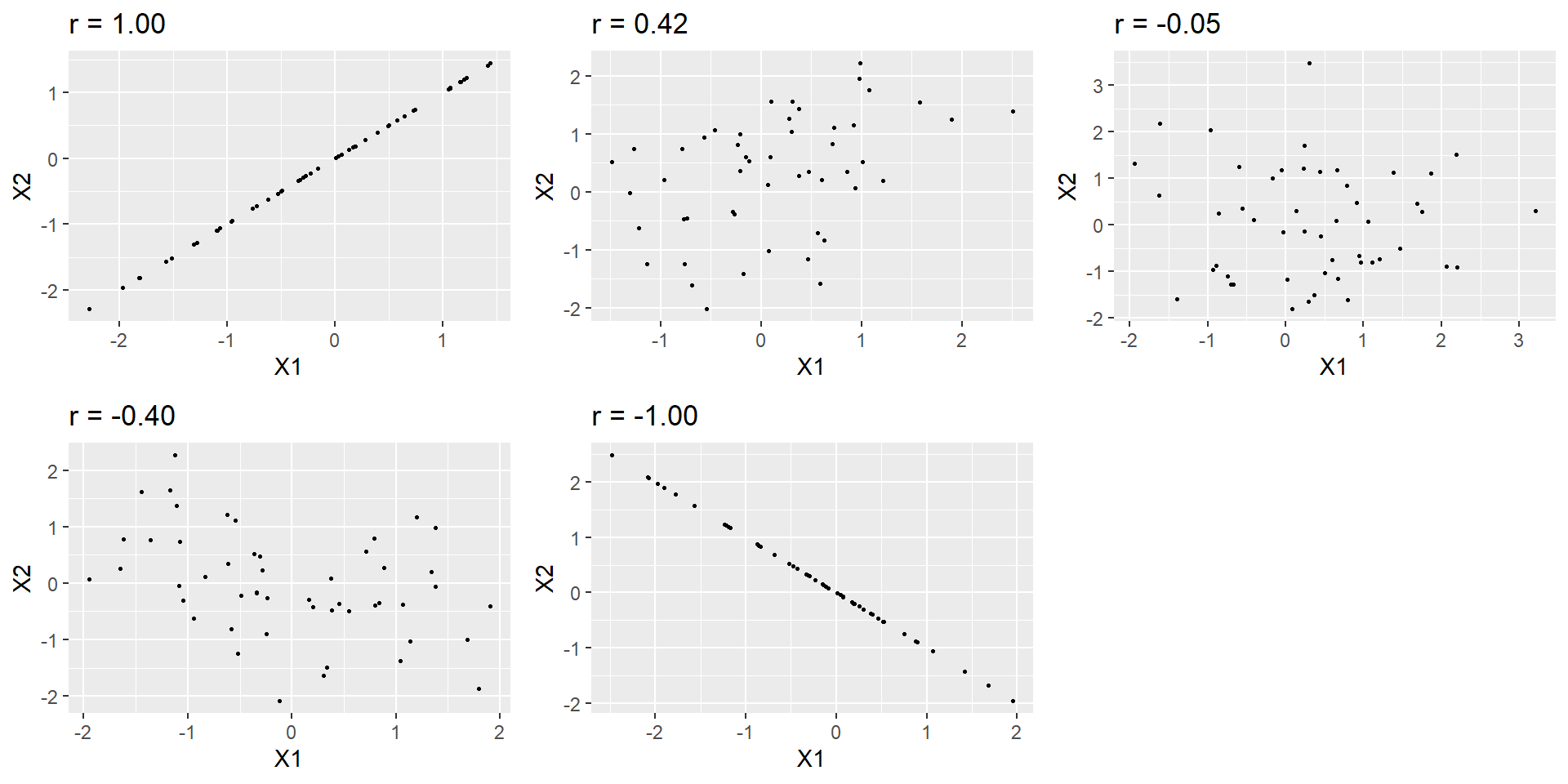 r can vary from -1 to 1: -1 is a perfect negative relationship, 0 no (linear) relationship, and 1 a perfect positive relationship. Try your skills eye-balling the size of a correlation: https://www.guessthecorrelation.com/