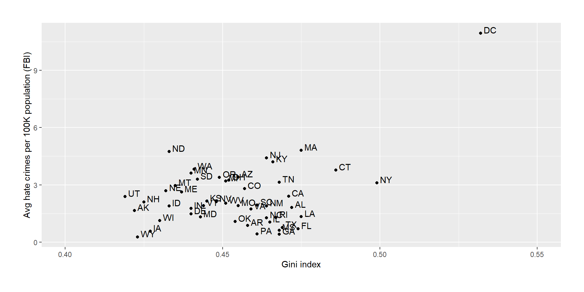 data: hateCrimes$avg_hatecrimes_per_100k_fbi and hateCrimes$gini_index