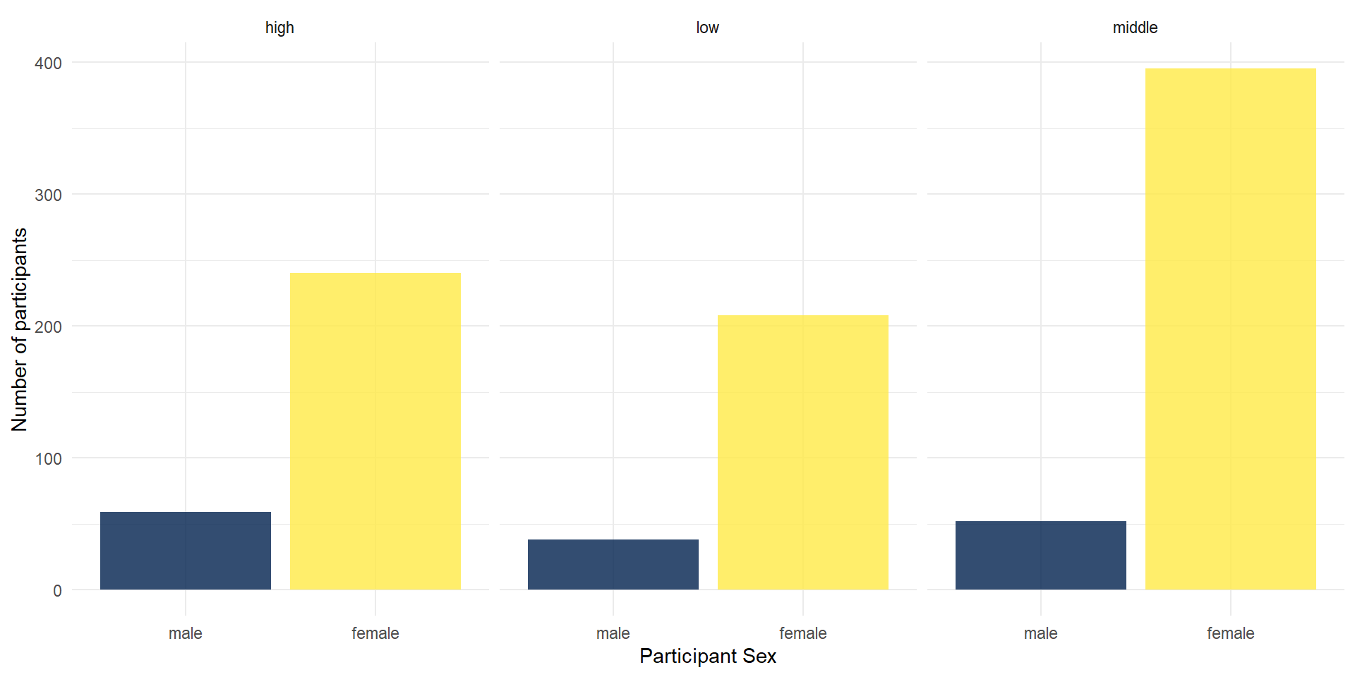 ggplot(summarydata2, aes(x = sex, fill = sex)) +
